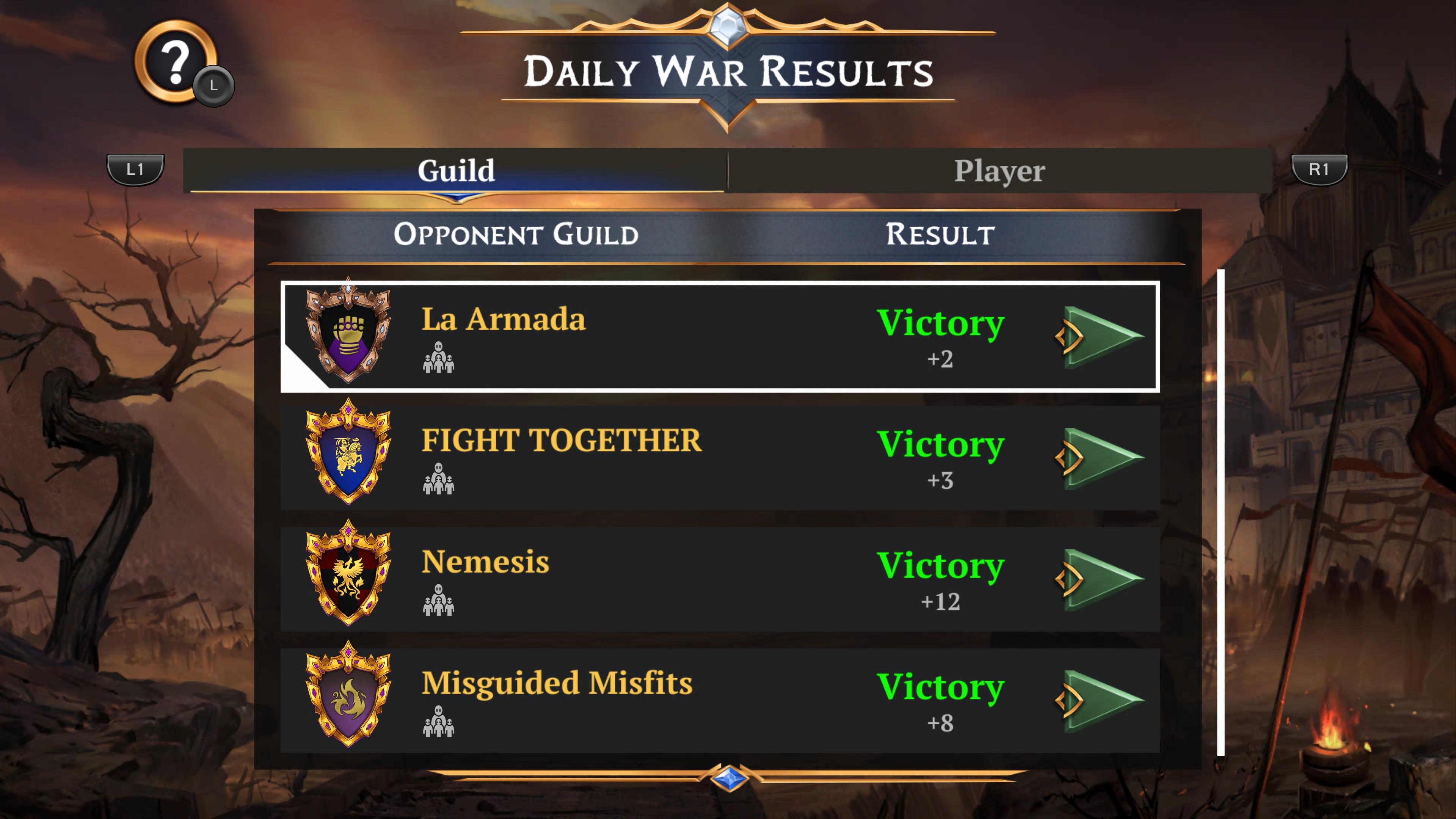 I’m in Dragoonz we were 3 points ahead of them last war from the Screenshot above this was our results beating the #1 guild got us 12 points