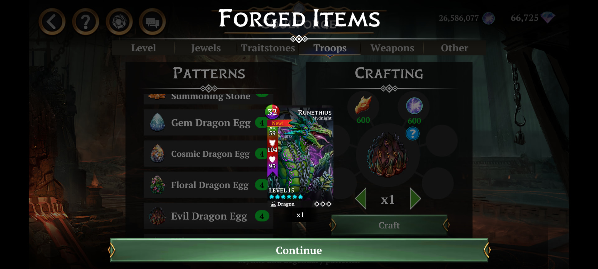 I didn’t have the information at the time, but Pandemonia is a troop that is not in the Evil Eggs and will be available to craft separately in the Soulforge.