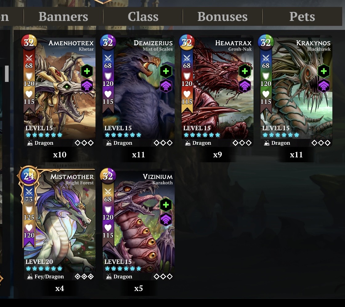 And the final dragon, Pandemonia is a huge letdown tbh. Amazing artwork, but there is absolutely no reason to use him over Stellarix or Chrysantherax. Virizium is the âRealâ final dragon, and itâs like OkraâNos summoned forth his master from hell to give us all nightmares.