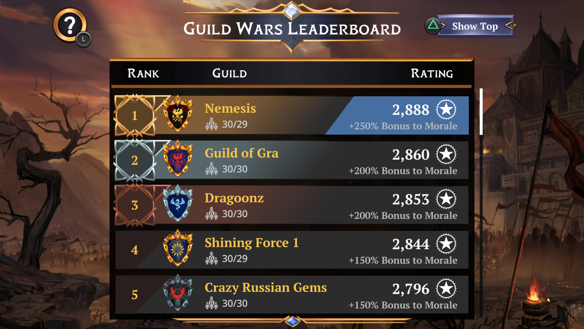 Give us a challenge and a chance to defend first from the 2nd and 3rd place guilds on playstation and not just hope we get paired up to get big points.