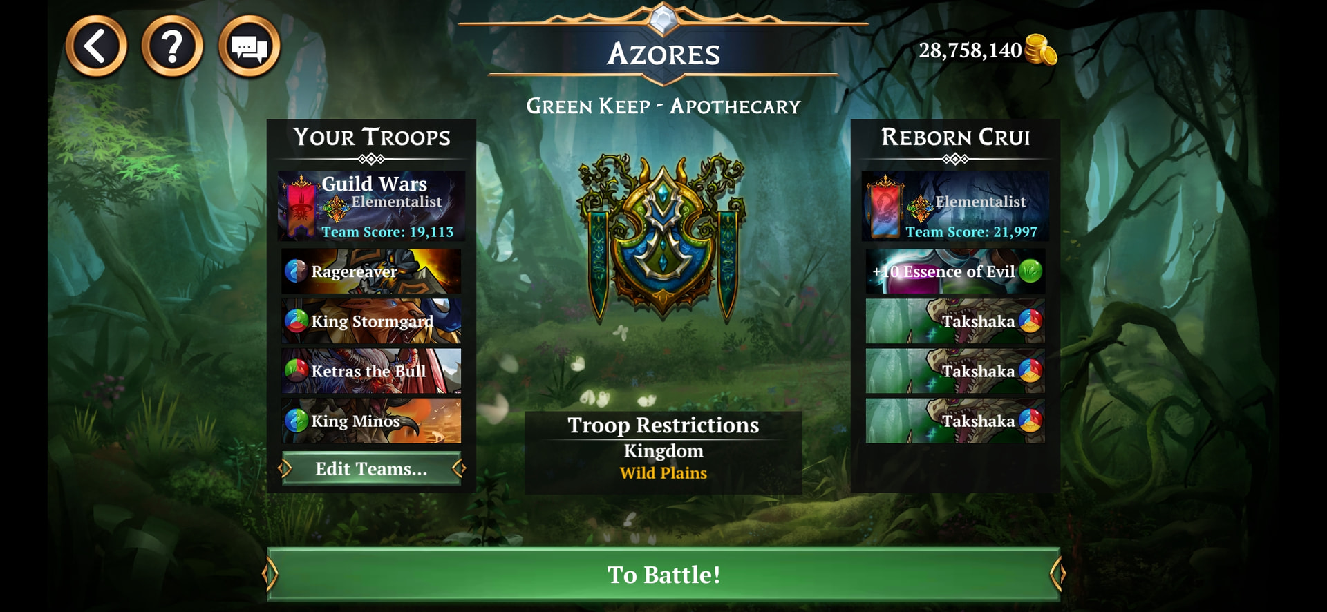 The guild wars remake is such trash. When kingdoms, like this one, don’t even have all the mana colors available in a weapon selections. It is very difficult to synergize a team to rival the defenses that get every advantage in a battle. Nothing is fun about this. Nothing.