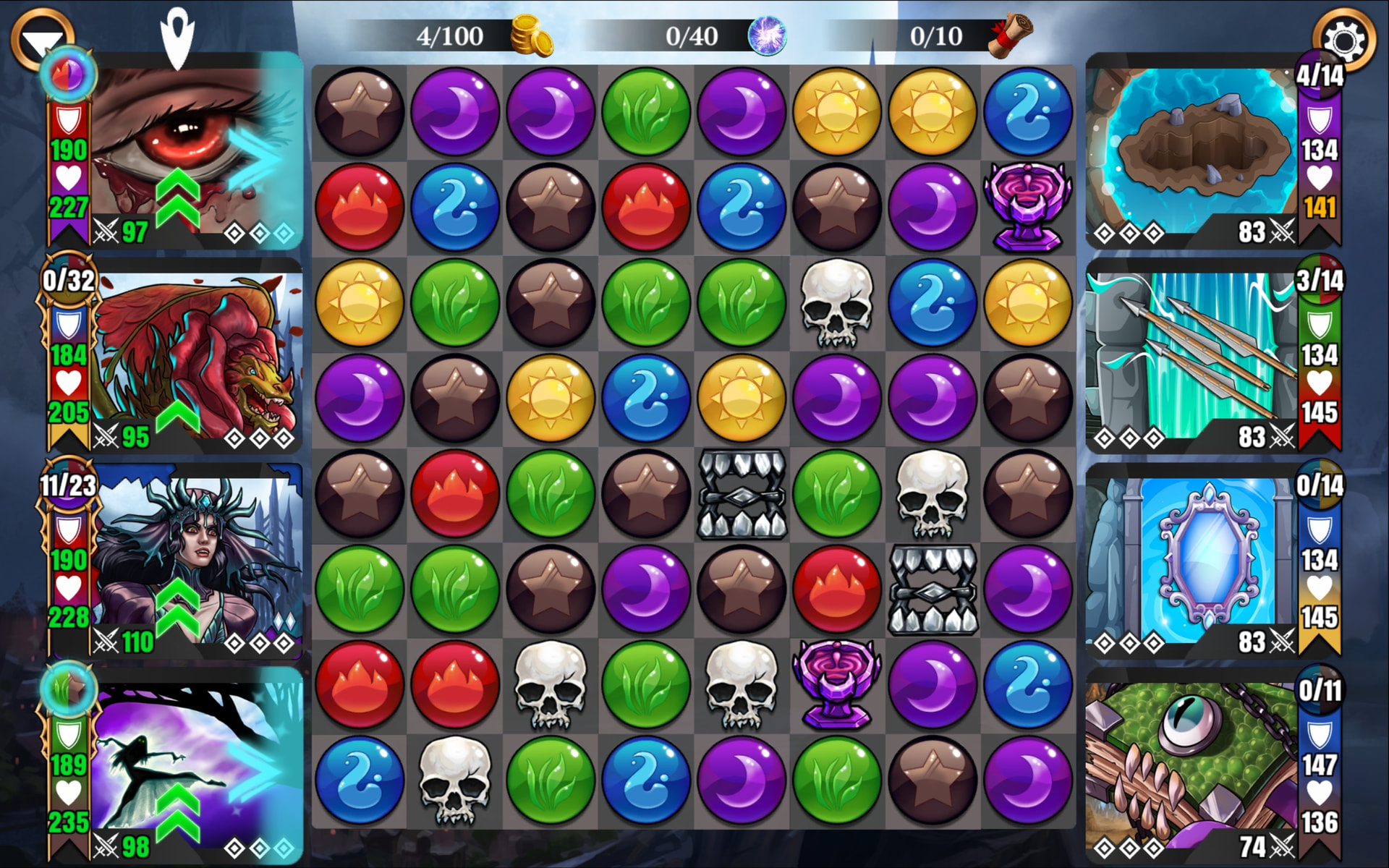 If you use this troop Lord Harker, to gain an extra turn from it’s conversion of brown gems to bleeding gems, it will not happen like this pic would obviously get you one from the 5 match in the upper left corner of the board.