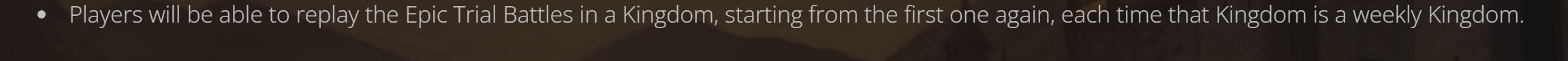 Lately, every time the new “Kingdom of the Week” is changed, the Epic Trials are reset for that Kingdom.