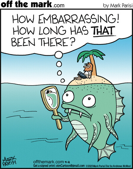One of the other bats says: “Oh don’t mind him … He’s doing yoga!”