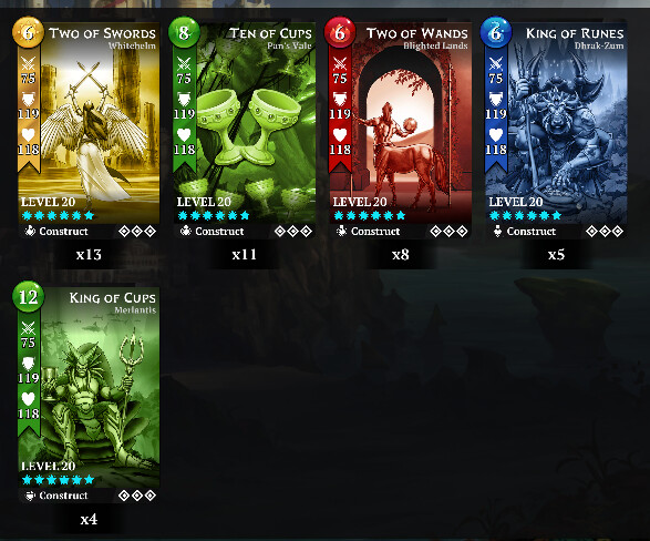 Im giving up. I have spend almost 1500 vault keys. I have gotten 3 Heart of Rages and 2 Epic Vault Keys. I have 1439 mythic Cedrics, 5 copies of King of Runes and 4 of King Cups. Those being the lowest copies of tarot i have. vittu