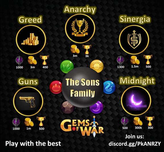 Come check out the Sons family. Guilds for every play level, up to #1 on the server, Sons of Anarchy. All our guilds complete all events and consistently generate weekly LT’s. https://discord.gg/PkANRZY