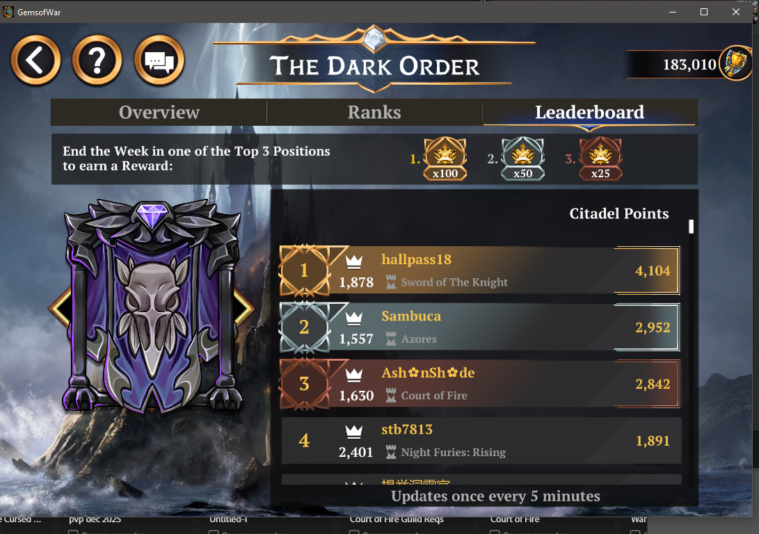 It has still not updated. I stopped playing but I just did my Citadel Battles as I did not want to miss those - and both scores in the Leaderboard and in my total went up, but the 15 000 is still missing. That 15 000 went missing this morning, before then the scores were the same. I please request the Devs to look into this and see what happened. Is this because I did the whole season in one week? I want to know what to avoid in future and why this happened.
