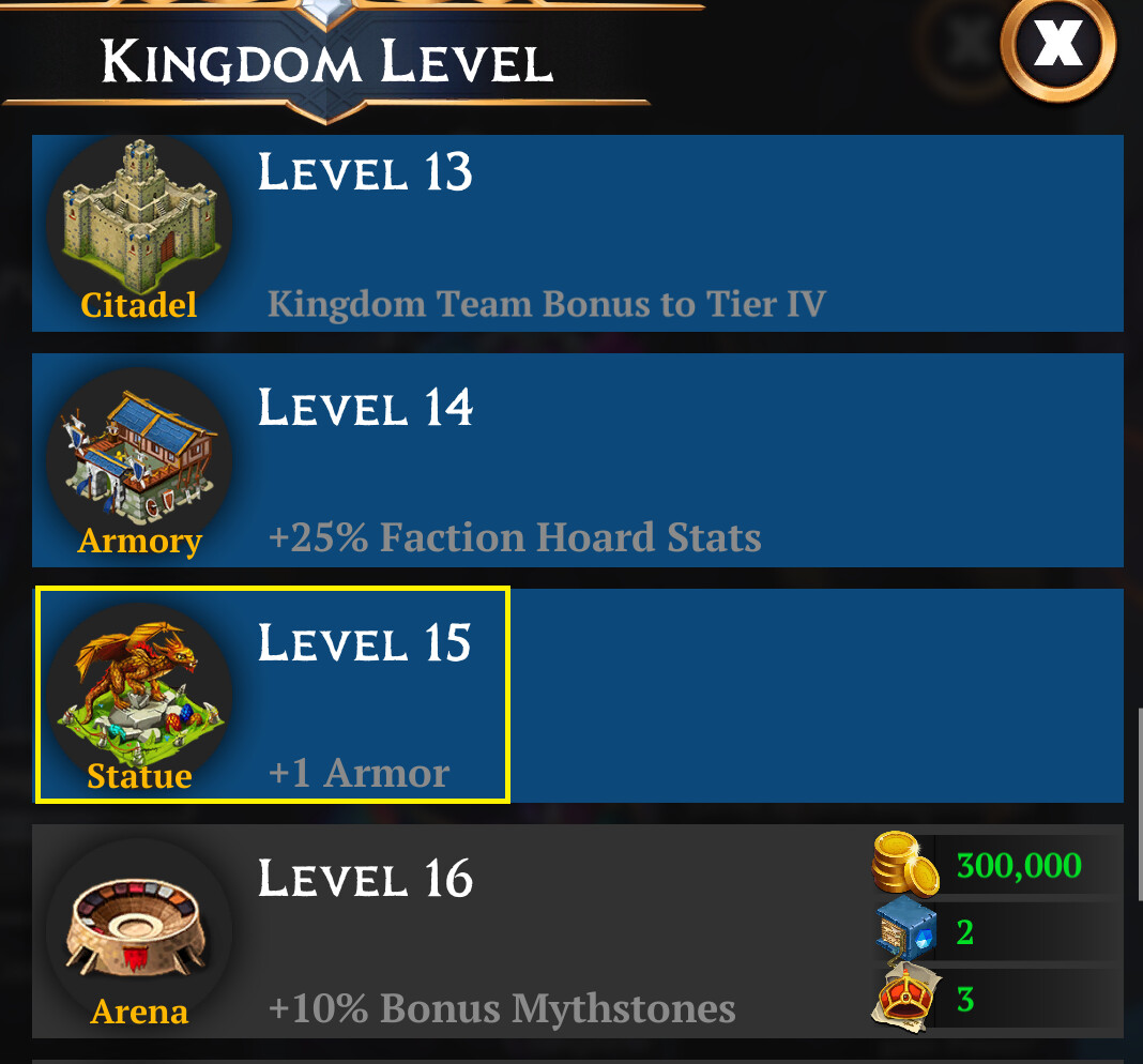 As mentioned prior, best get all kingdoms equally up to certain levels, before starting to go for “finishing pushes” on specific ones Its better to get a bunch of boni from all places, then the highend bonus from only a selected few Kingdoms right away. After Magic Kingdoms I deem Attack boosting Kingdoms next in line, because more skulling damage comes always handy. Afte rthat, Life Kingdoms are next best to improve against those “True Damage” insanity we get thrown at us more and more. Armor Kingdoms are not useless, but now still the last to push for highend bonus