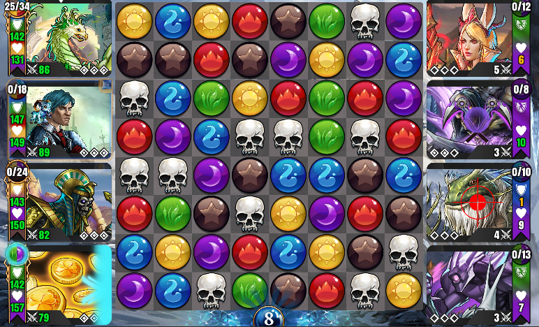 Before the battle (when choosing opponents), you see the base number of VP for victory, to which bonus VP are added for actions (Match X-gems, gain X extra turns, win in X turns, X troops alive at the end, 1-shot-kill). The base number is a maximum of 90 VP, and the bonus is a maximum of 35. On the victory screen, you see the total: base points + bonus points (taking into account the multipliers, which will be discussed further). Thus, for a “normal” battle, you can get a maximum of 125 points. If there is a region with bloody rage, you will receive double the amount (90+35) x 2. If you use the Victory Talisman, it will be tripled (90+35) x 3. That is, a region with bloody rage, as well as the victory talisman, doubles the amount (base points + bonus points)